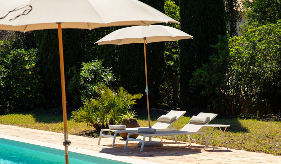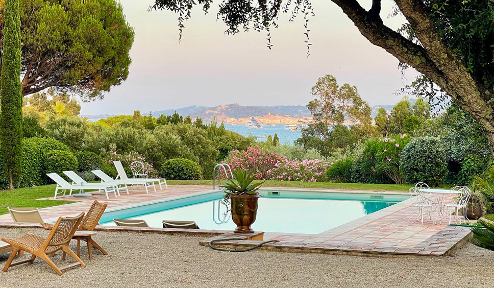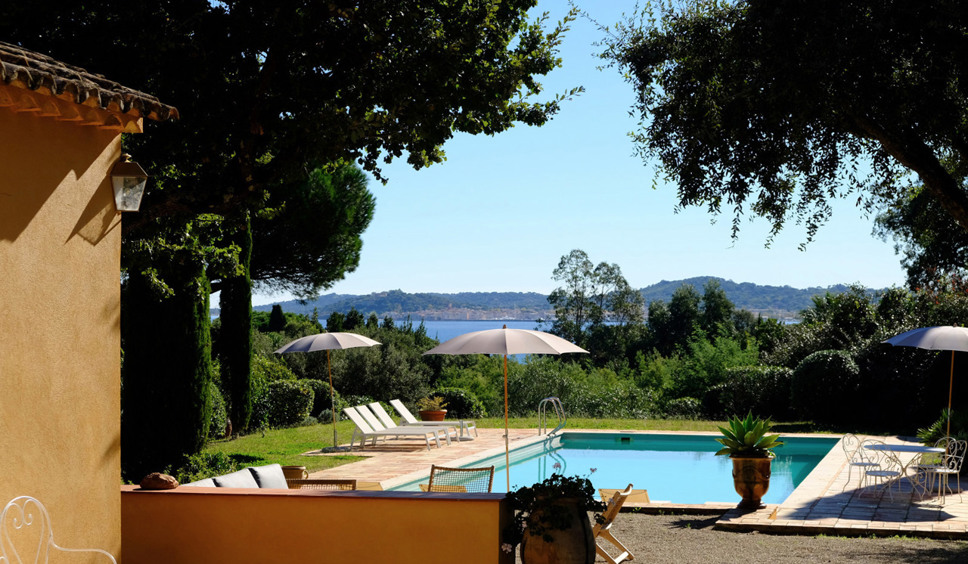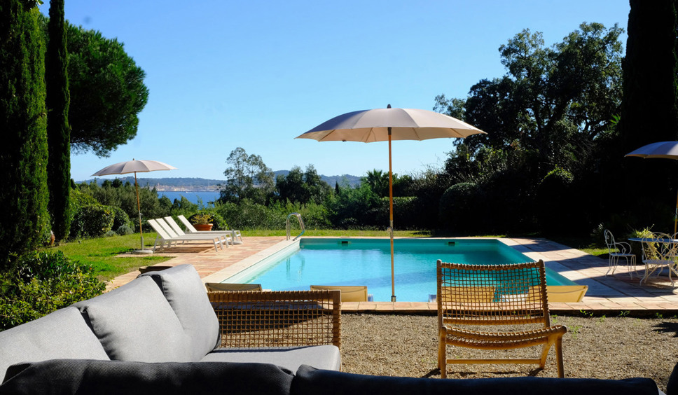 Het zwembad is royaal met haar 13.5 x 6.5 m. Er zijn 8 ligbedden en 7 parasols. Het zwembad wordt schoongehouden middels elektrolyse zout. U kijkt uit over zee richting Saint Tropez. In de zomer dobberen er luxe boten zij aan zij wat zeker s'avonds met de lichtjes erg leuk is.