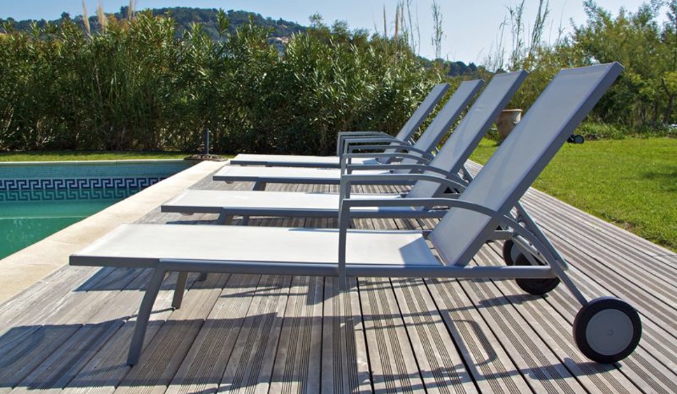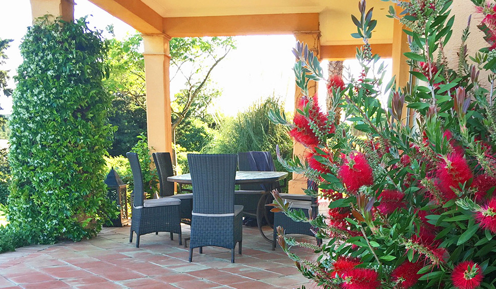 De terrassen zijn met klassiek meubilair ingericht. Het zwembad is omringd door parasols en ligbedden. Voor buitenvertier is er een pingpongtafel, een BBQ en een jeu-de-boulesbaan. Het terrein is toegankelijk via een elektrisch bedienbaar hek. Auto’s parkeert u eventueel in de ruime garage.