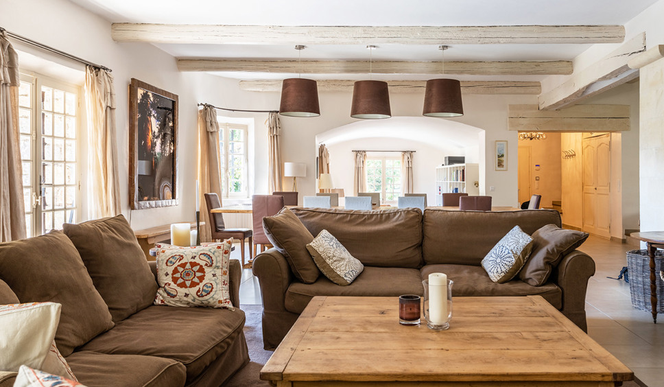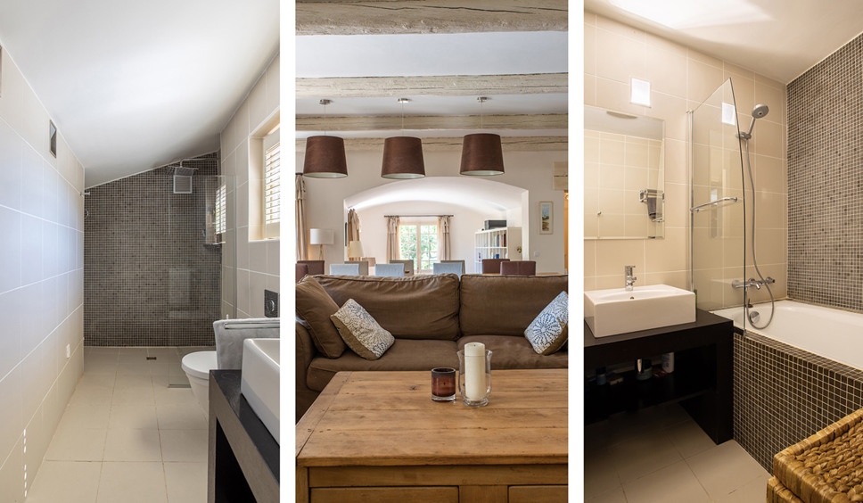 Deze Provençaalse familievilla is allereerst zeer ruim van opzet. In de smaakvol ingerichte living staat een comfortabele zithoek rond de open haard. Een 42-inch flatscreen internet TV met Nefflix. Via openslaande terrasdeuren loopt u zo het royale stenen terras op vanwaar een mooi zicht op het dorp Bargemon.