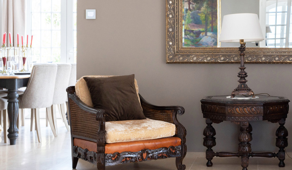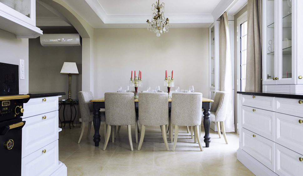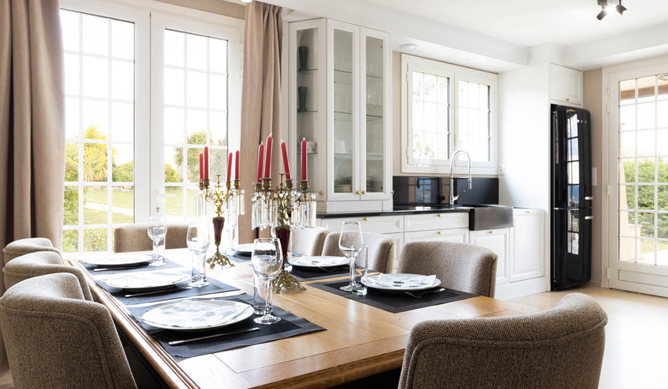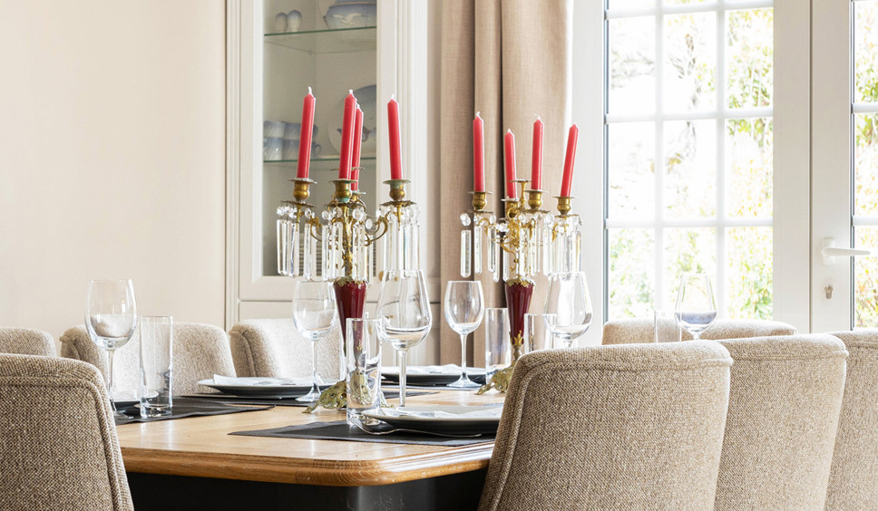 De living is heerlijk ruim en ingericht in een mix van comfy banken en klassieke fauteuils. De living opent via tuindeuren naar het half overdekte terras met eettafel. In het verlengde van de living bevindt zich de eetkamer (eettafel 6 stoelen). De open keuken direct naast het eetgedeelte is voorzien van alle gemak. De keuken biedt toegang tot het terras cq de tuin richting het zwembad.