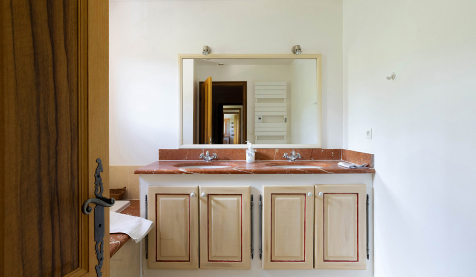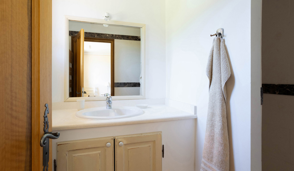 De villa beschikt over 4 slaapkamers en 4 badkamers. Slaapkamer 1, de masterbedroom bevindt zich op de begane grond. Deze slaapkamer beschikt over een tweepersoonsbed (180x200) en een en-suite badkamer met bad, douche en toilet. Aangrenzend aan deze kamer is een studeerkamer met slaapbank. Hier kunnen eventueel 2 kinderen slapen. Ideaal voor ouders met (jonge) kinderen. Deze studeerkamer is enkel toegankelijk vanuit de master bedroom.
