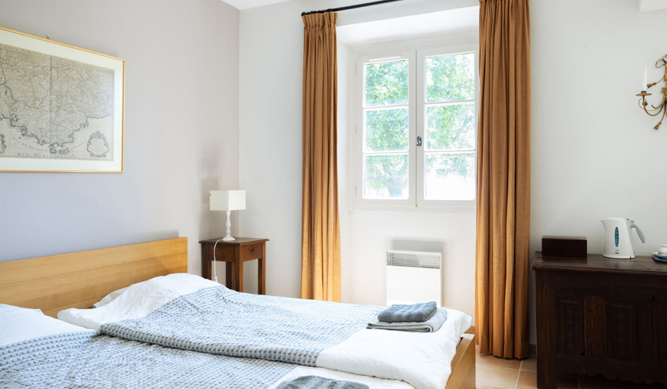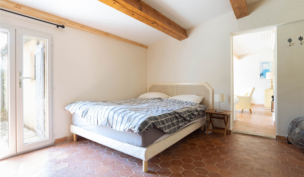 Slaapkamer 4 bevindt zich in het separate alsook eenvoudig gastenverblijf (Cabanne) op korte afstand van de villa. Voor het huren van het gastenverblijf geldt een toeslag. Naast een slaapkamer biedt de Cabanne een woonkamer, een keuken, een eenvoudige badkamer met douche en een apart toilet.