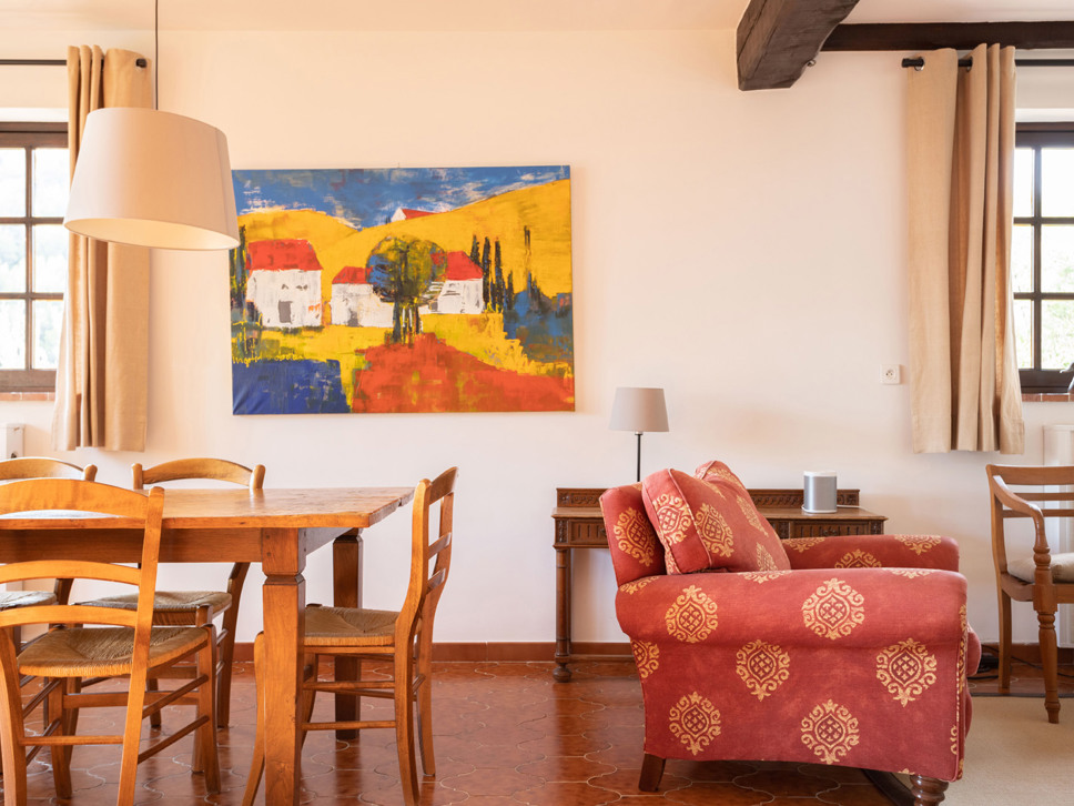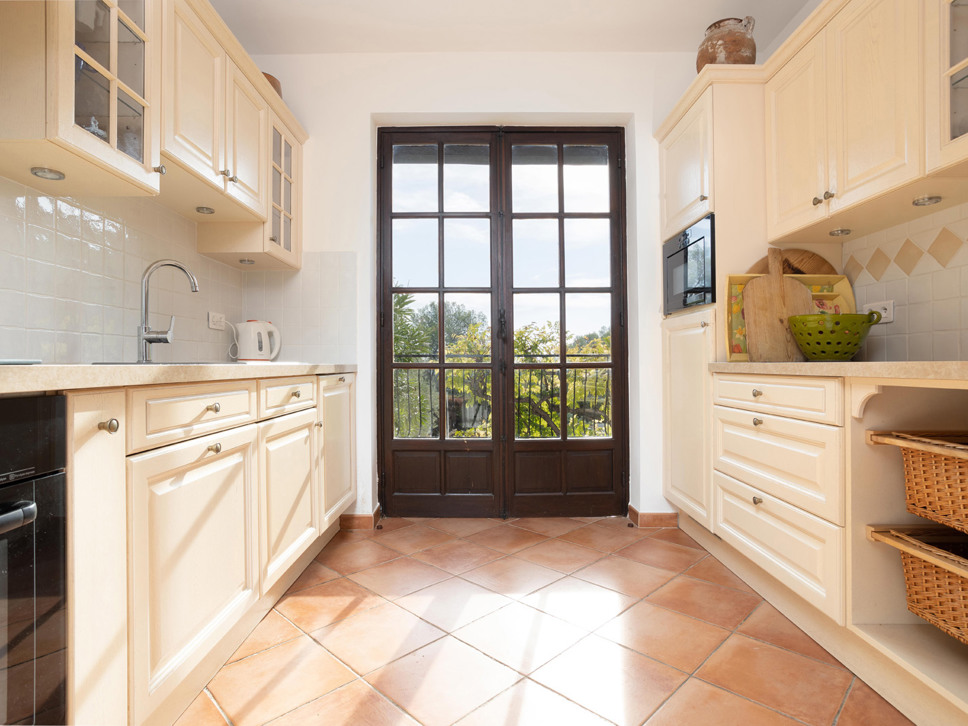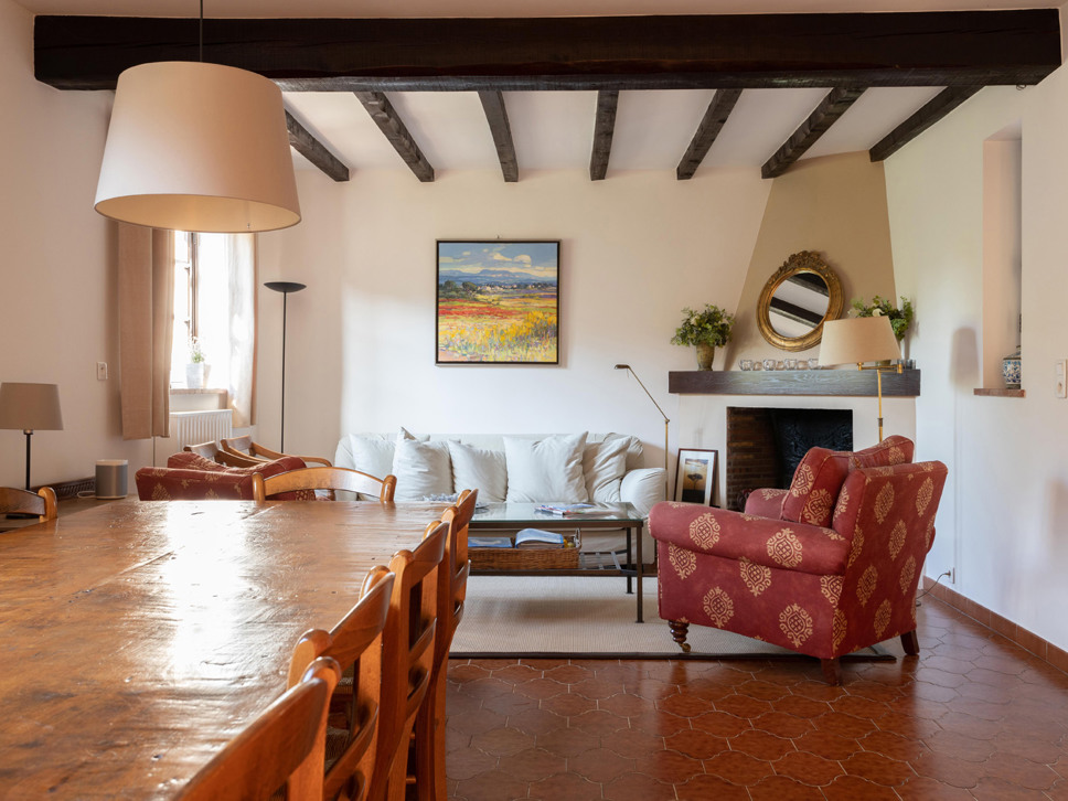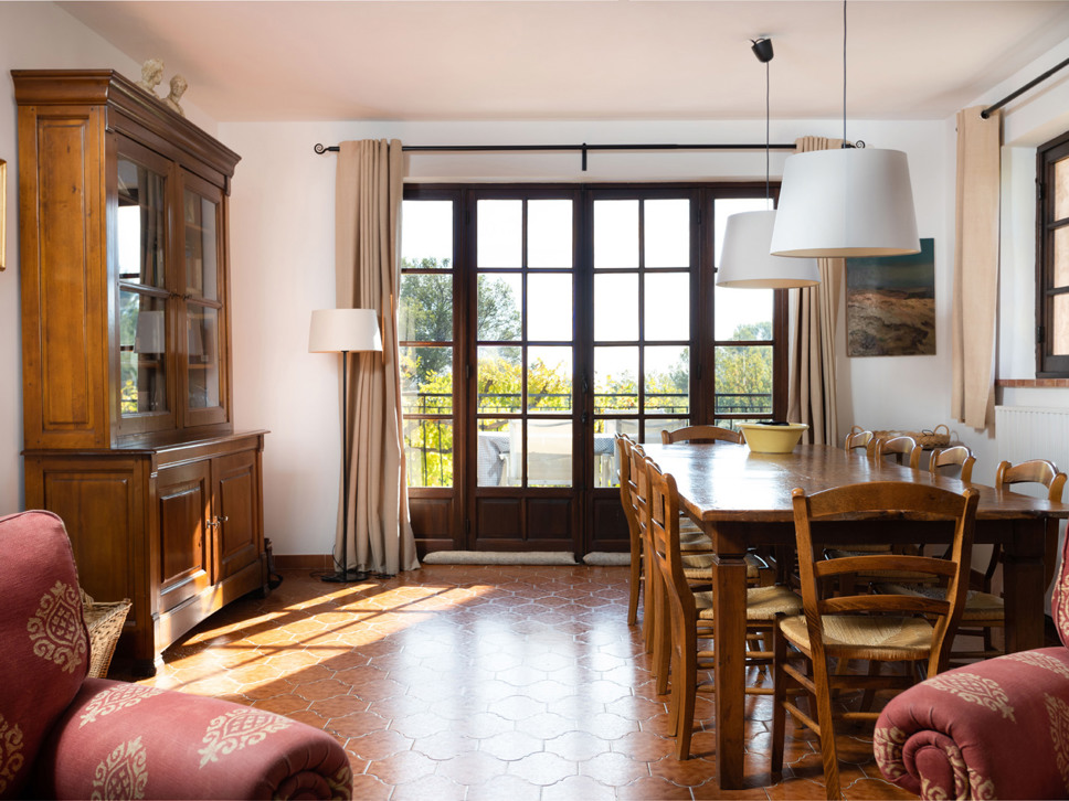 De villa is sfeervol ingericht door de Nederlandse eigenaar. Als u binnenkomt, loopt u vrijwel direct de woonkamer in met open haard en televisie met Nederlandse kanalen. Hier vindt u ook een grote antieke eettafel waaraan 12 personen gezellig kunnen eten. Naast de salon bevindt zich de hoofdkeuken die van alle gemakken voorzien is zoals een oven, vaatwasser, magnetron, koelkast.
