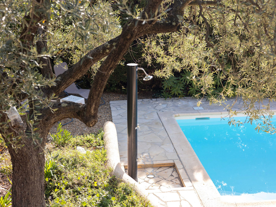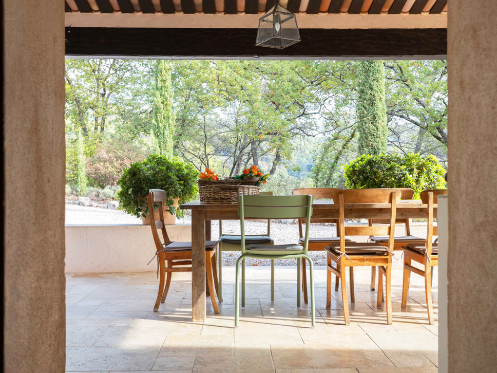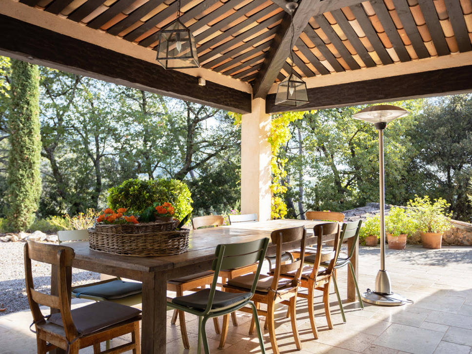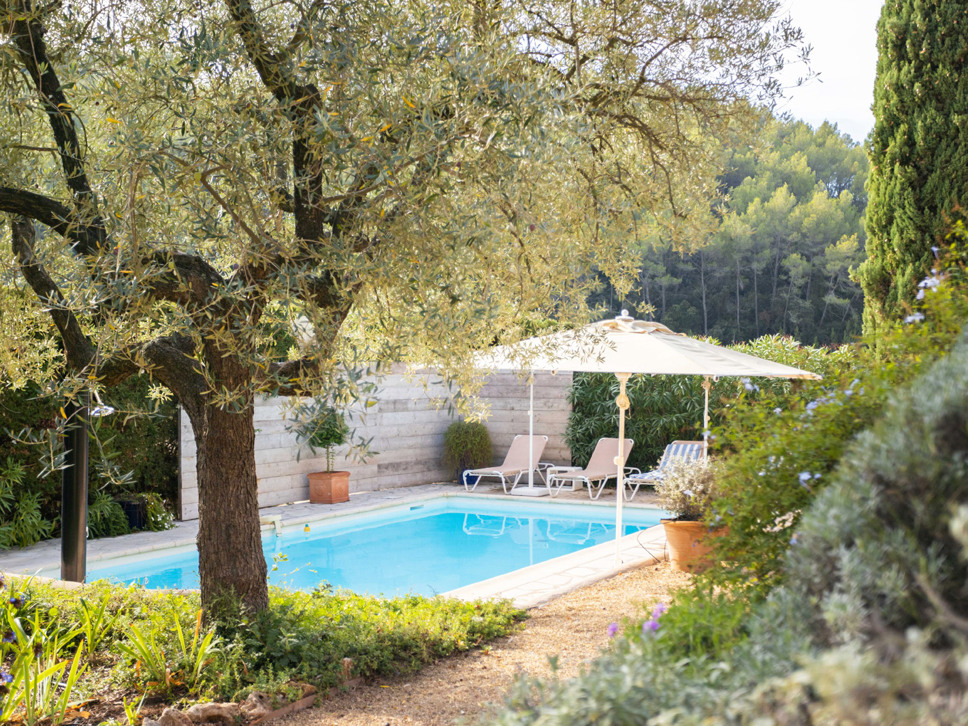 Het bijzondere aan de villa vinden wij de fraaie buitenkeuken op het royale buitenterras (8x4m, hoogte 5.40) met de XL eettafel voor 12 personen. De villa beschikt verder over verschillende leuke terrassen, enkele overdekt.Het privézwembad is voorzien van een alarm en meet 9 x 4,5 mtr. Het grote terras (20x2 meter) loopt over de gehele breedte van de woningen. Dit terras is goed afgesloten, waardoor kleine kinderen niet zomaar naar de tuin en het zwembad kunnen lopen. Op het balkon komen de 2 woonkamers, de keuken en een aantal slaapkamers uit. In de tuin bevindt zich ook nog een grappige oude natuurstenen cabanon welke als opslag gebruikt wordt. Er is een Jeu de Boulesbaan aanwezig voor het nodige vertier.