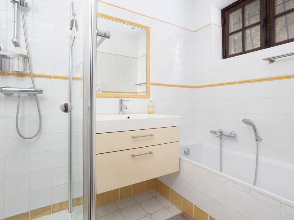 Slaapkamer 3: Deze slaapkamer heeft een tweepersoonsbed van 190x200 cm en een en-suite badkamer met zowel een bad als een aparte douche.