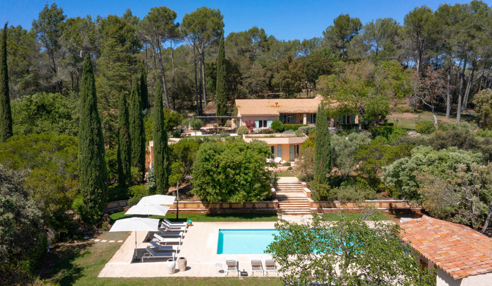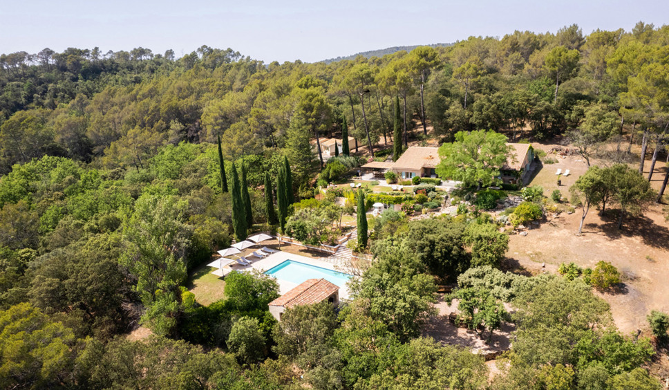 Villa Bessons ligt op een terrein van 190.000 m2. U begrijpt het; uw rust en privacy zijn hier gegarandeerd. Rond het huis is 6000 m2 omheind en afgesloten met een hek. Op de rest van het landgoed met zijn eikenbossen en olijfboomgaarden kunt u mooie wandelingen maken.