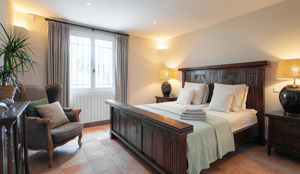 Er zijn in totaal 6 royale slaapkamers en 4 badkamers. Alle slaapkamers voorzien van airconditioning. De indeling is als volgt; op de begane grond, niveau living, bevinden zich 3 slaapkamers. Op de beneden verdieping, niveau tuin, bevinden zich 2 slaapkamers en op de 1e verdieping bevindt zich de 6e slaapkamer.