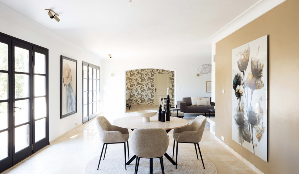 De living is licht, ruim van opzet en fraai eigentijds ingericht met design zitmeubels waaronder een comfy zithoek en ronde eettafel. Wifi, op het hele terrein beschikbaar, is via Starlink, beter kan niet in Zuid-Frankrijk. De open keuken ligt in het verlengde van living en eetkamer. De keuken is modern van kleur en landelijk qua uitstraling. De keuken is goed uitgerust en biedt alles wat u nodig heeft.