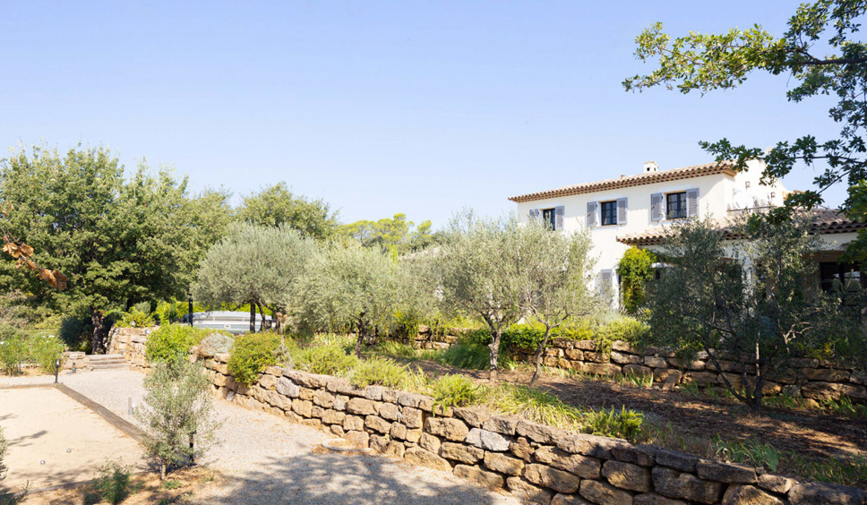 Het privéterrein is royaal met dik 4000 m2. U geniet dan ook van een goede privacy. De tuin is licht geaccidenteerd met een iets lager gelegen zwembad en jeu de boulesbaan.