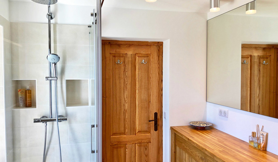 Slaapkamer 3 heeft een tweepersoonsboxspring (180x200). Deze slaapkamer wordt met een zwaar gordijn afgescheiden van de trap. Op de derde verdieping, in een voormalige Provençaalse ‘duiventil’ is de vierde slaapkamer. Deze duiventil is verbouwd als kinderslaapkamer met een futon (160x190), geschikt voor 2 kinderen boven de 8 jaar.