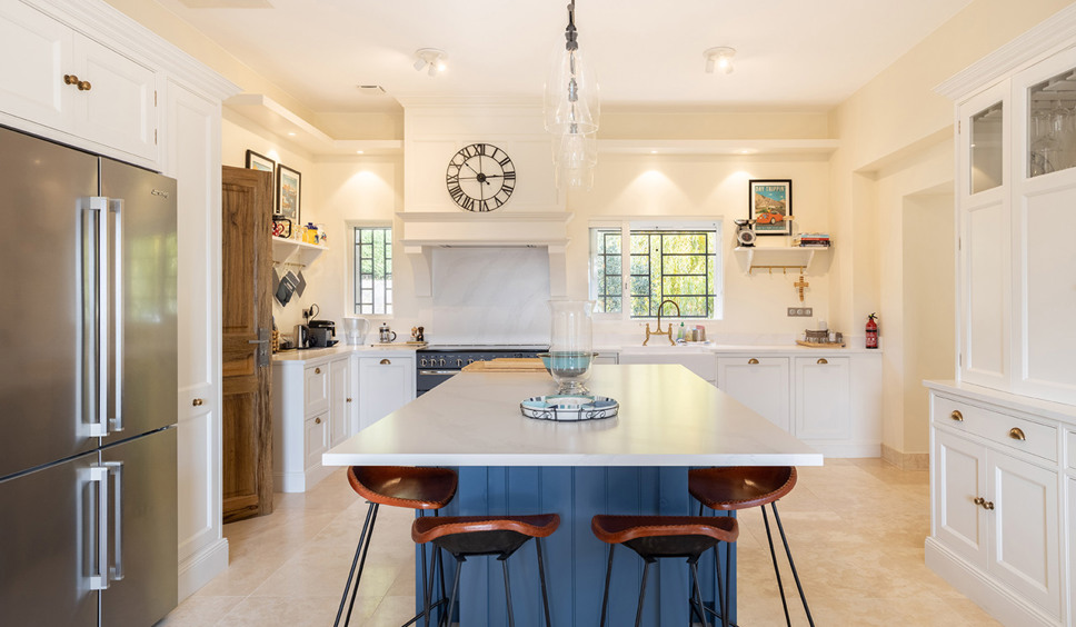 De keuken is modern ingericht en voorzien van een Amerikaanse koelkast / vriezer, vaatwasser, 5-pits gaskookplaat, magnetron, oven en filterkoffiezetapparaat. Vanuit deze open keuken heeft u direct toegang tot het overdekte terras het zithoek en eettafel.