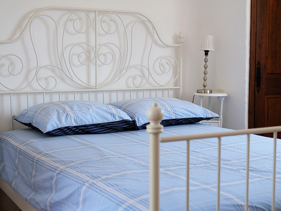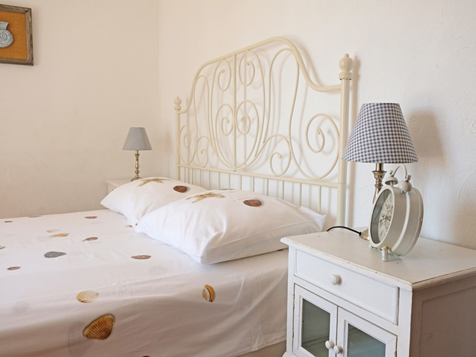Op de eerste verdieping bevindt zich de ouderslaapkamer met een en-suite badkamer (douche en toilet). Er staat een tweepersoonsbed (180x200). Met openslaande deuren naar het privébalkon en fraai uitzicht op de Middellandse zee.