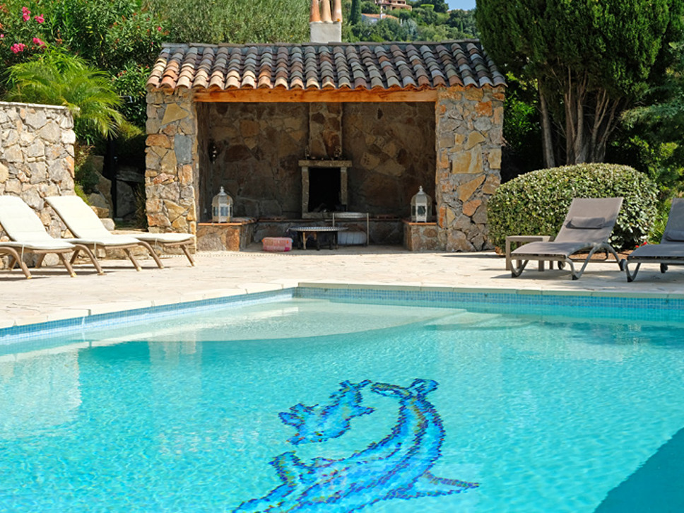 De feature van deze charmante villa is ons inziens het geweldige zeezicht. Zowel vanaf het zwembad als het terras kunt u genieten van dit bijzondere uitzicht. Erg leuk is ook de “Cabanon” aan de korte kant van het zwembad. Een soort overdekt terras met een open haard en stenen banken voorzien van kussens. In de zomer een perfect plekje in de schaduw en in het voor- en najaar de plek om nog extra lang te genieten van het buiten zijn dankzij de open haard en aanwezige verlichting.